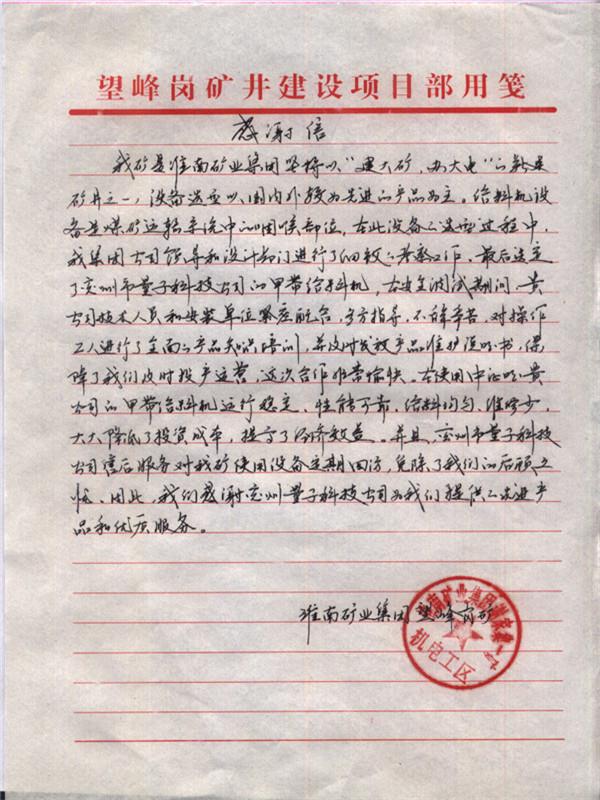 望峰崗感謝信